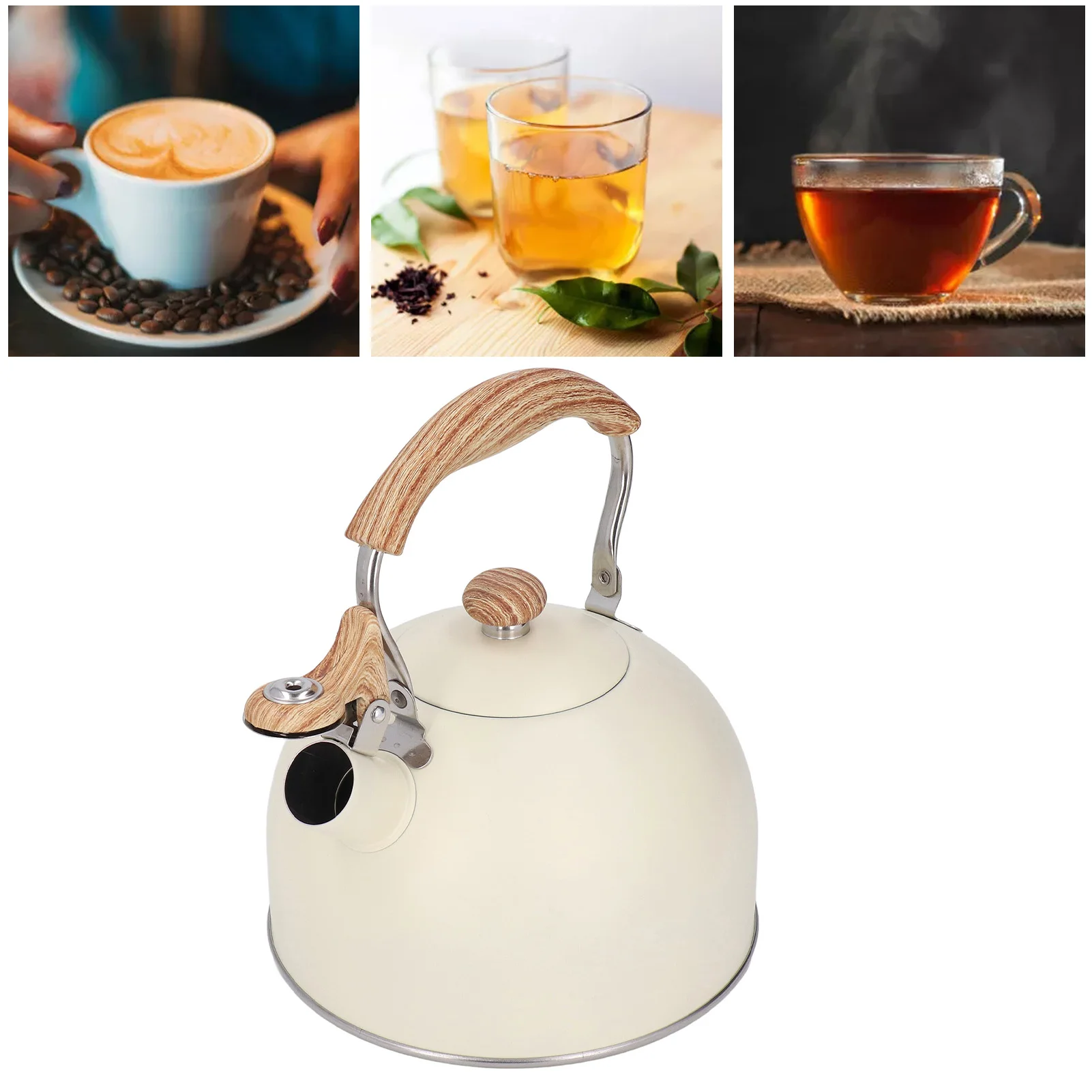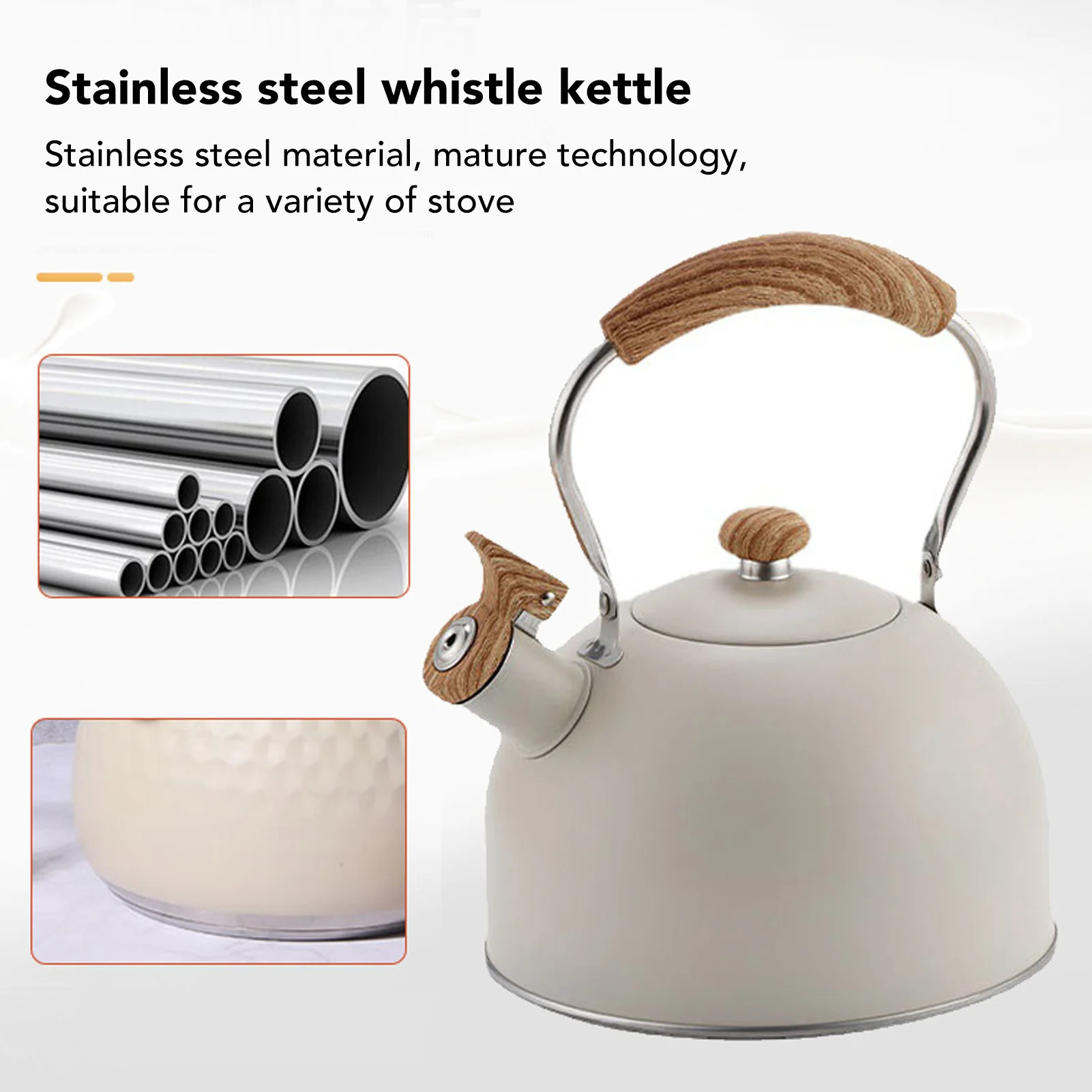 2.5L Stainless Steel Teapot Beige Whistling Tea Kettle with Handle Convenience Tea Pot Kitchen Accessories