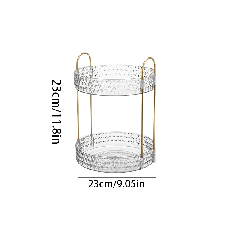 【Clear & Elegant Design】 rotating makeup organizer for vanity with Clear design and diamond pattern makes this makeup organizer spinner an elegant look. Not only suitable for storage but also suitable for decoration. The clear material of the spinning makeup organizer enables you easily find out where your cosmetics are.