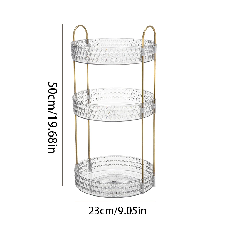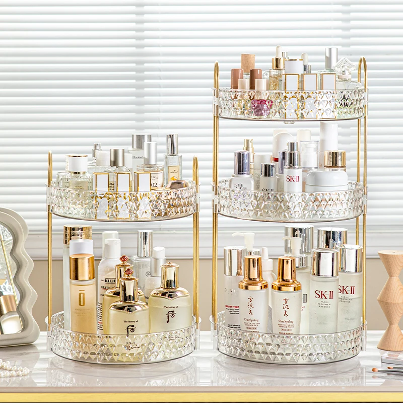 360° Rotating Cosmetic Organizer 3 Tier Transparent Diamond Pattern Cosmetic Rack Bathroom Cosmetic Vanity Organizer Countertop