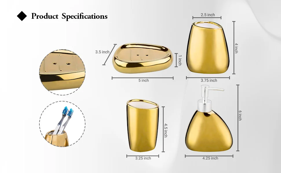 - Outfit your new bathroom or upgrade your current bathroom accessories set with its exquisite design, giving your bathroom a touch of elegant style.
