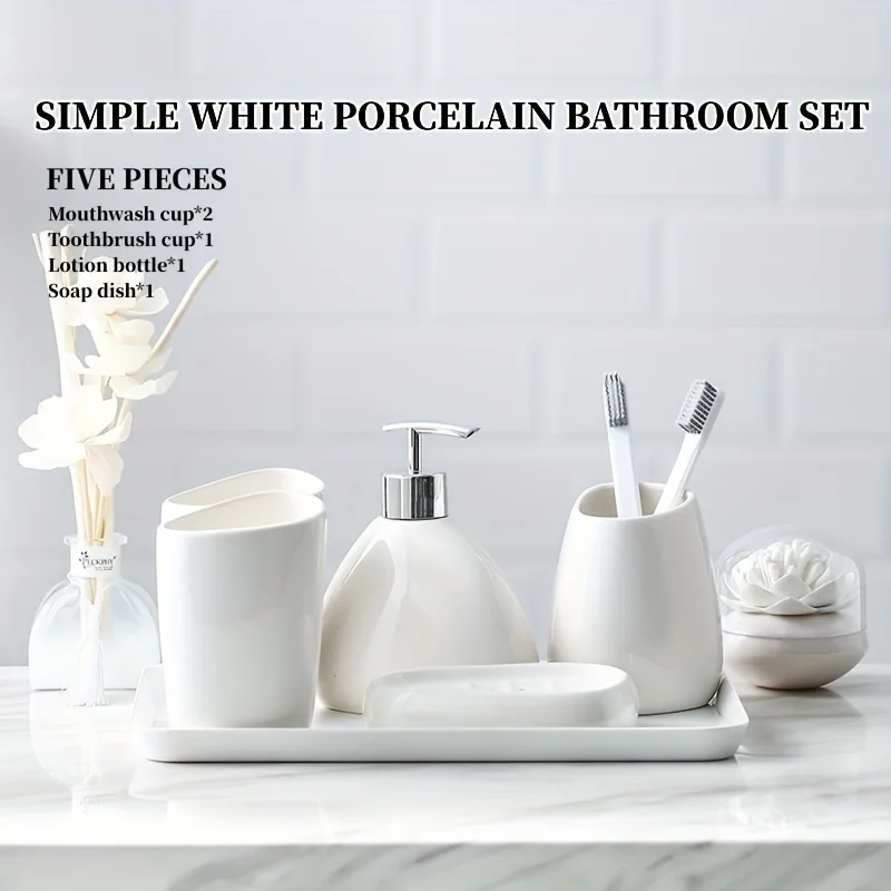 4/5 Pcs Modern Ceramic Bathroom Accessory Set with Pump Dispenser Tumbler Toothbrush Holder and Soap Dish Bathroom Supplies