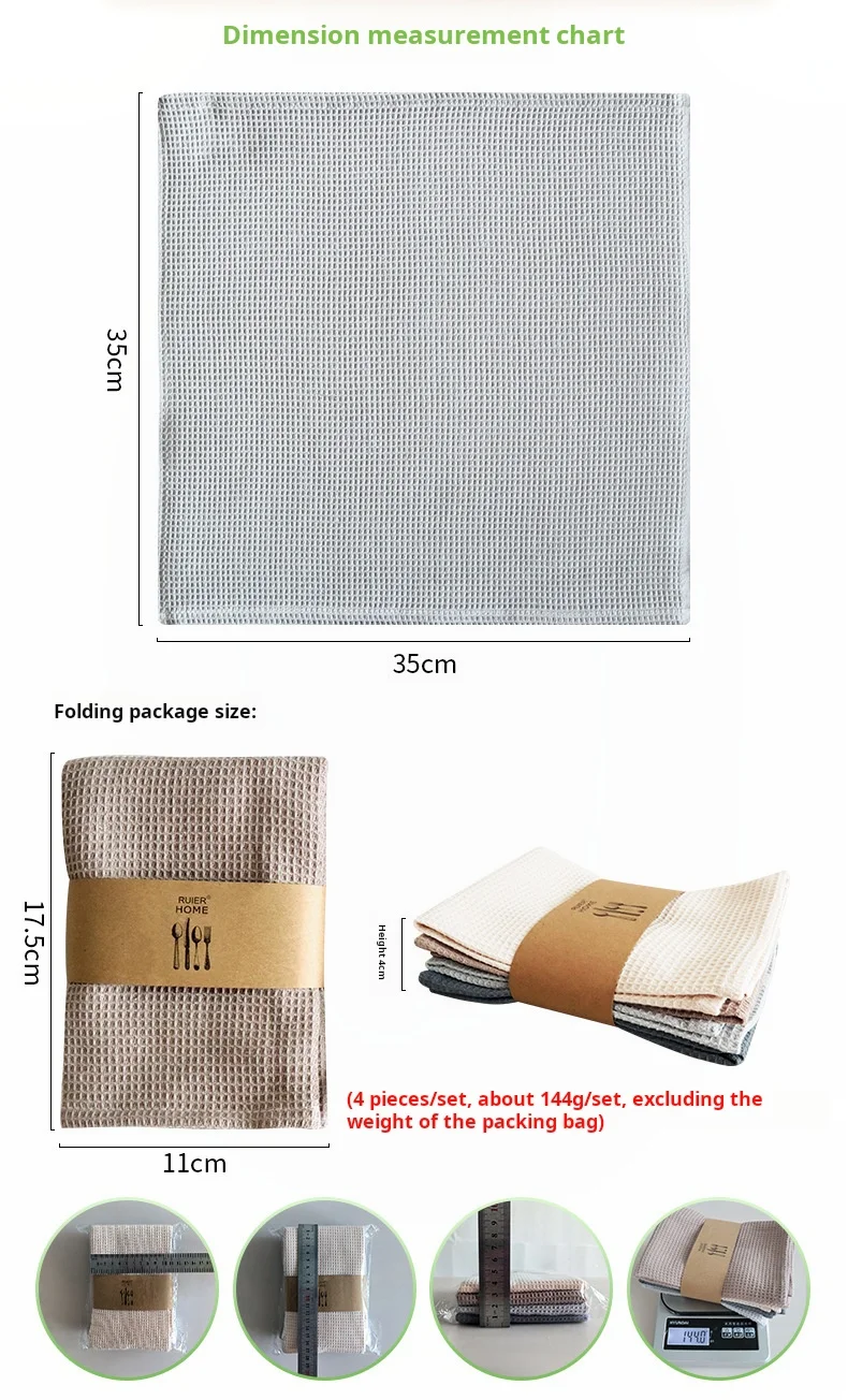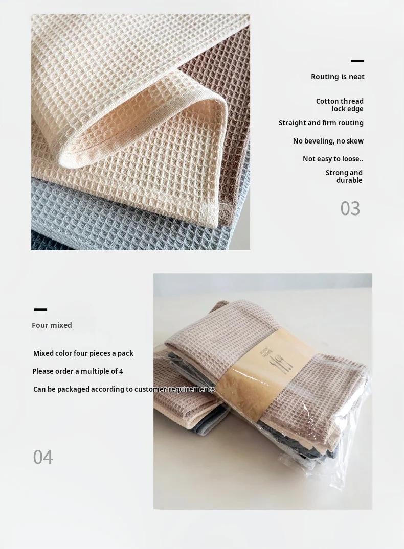 4 Cotton Washcloths Plain Color Waffle Dish Towels Absorbent Cleaning Supplies Suitable For Many Scenarios