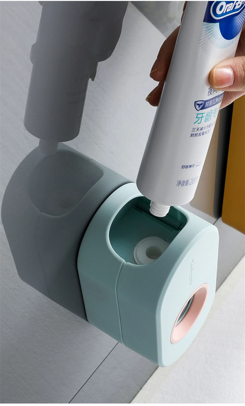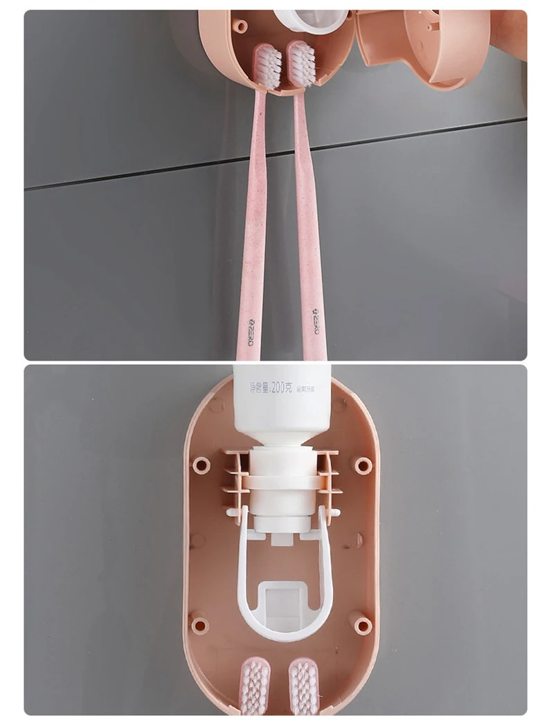 Automatic Toothpaste Dispenser Wall Mount Toothpaste Squeezer with Toothbrush Holder for Family Shower Bathroom Accessories