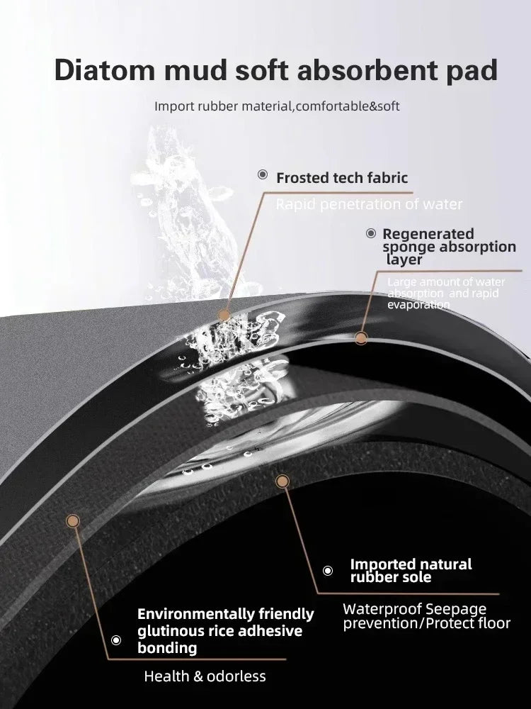 2. Diatom mud fabric surface can absorb moisture quickly; Foam absorbent layer can absorb water instantly and evaporate quickly.