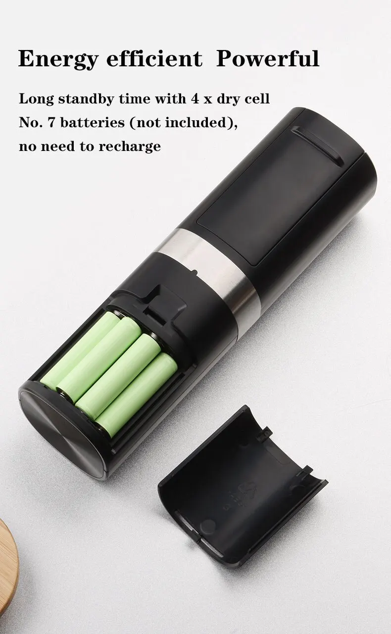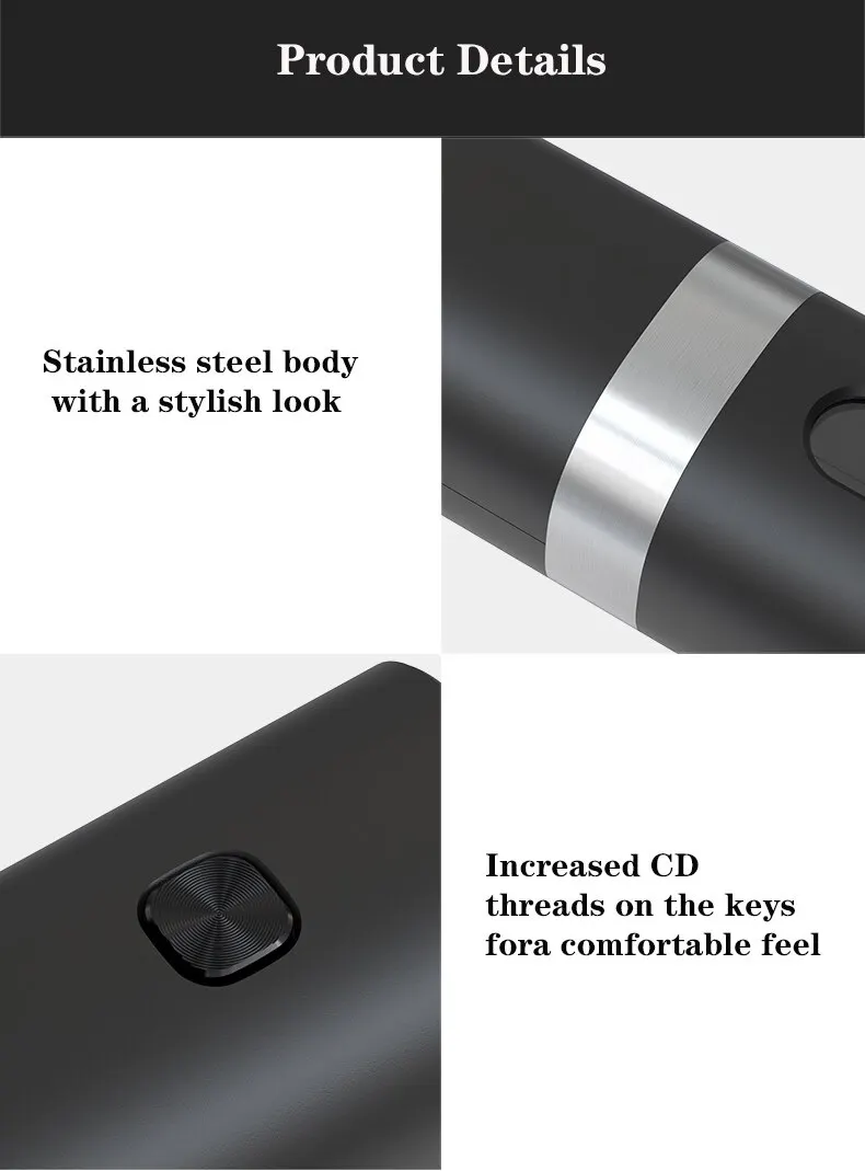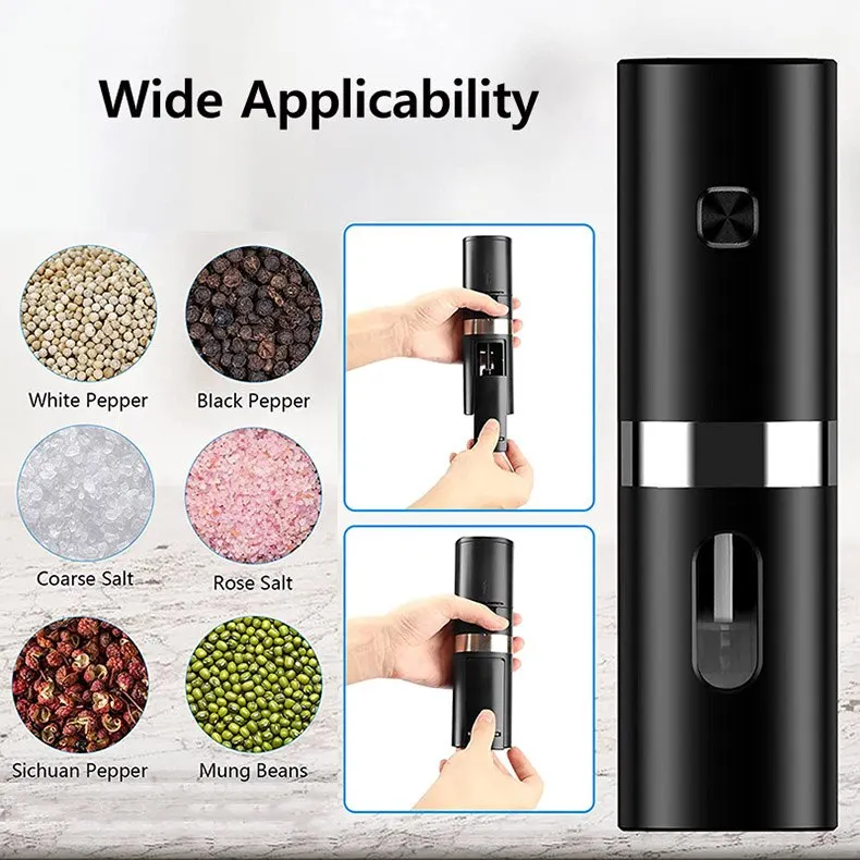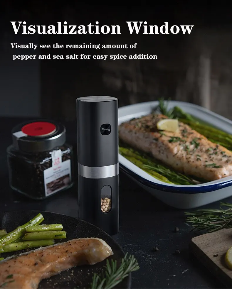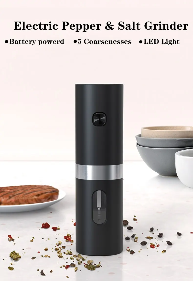 This electric pepper grinder can grind a variety of spices like Himalayan salt, sea salt, white and black pepper, black sesame and Sichuan peppercorn.
