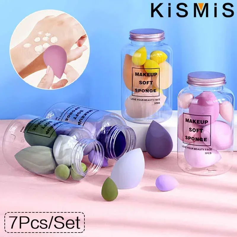 KISMIS 7Pcs/Set Soft Wet and Dry Use Makeup Sponge Set Cosmetic Puff Makeup Sponge Foundation Powder Sponge Beauty Tool