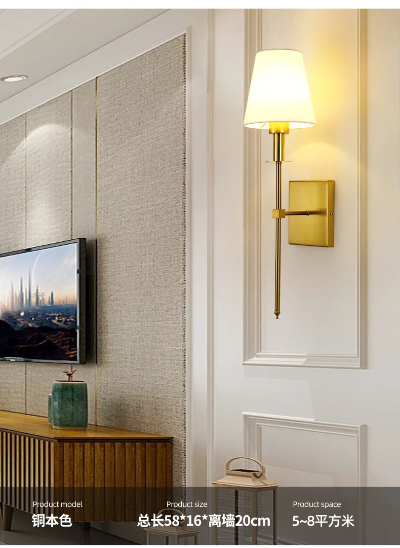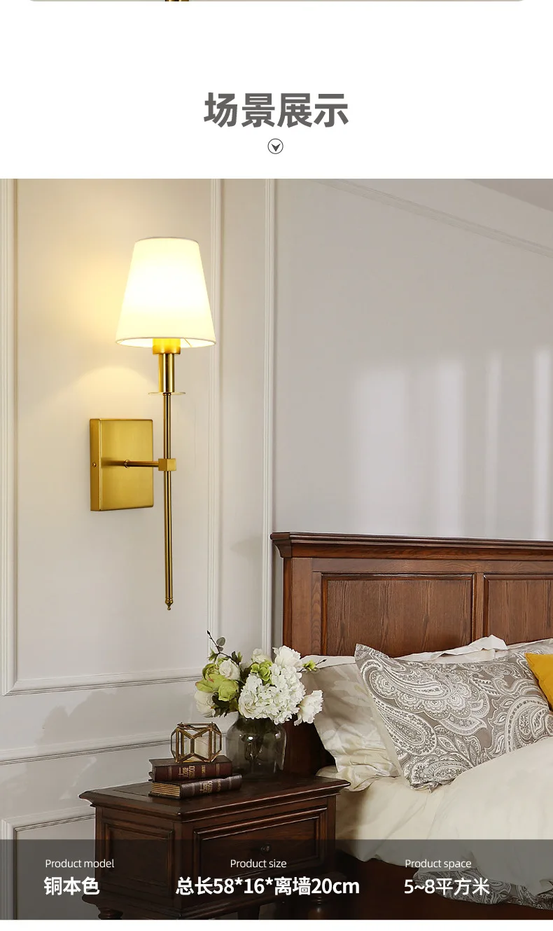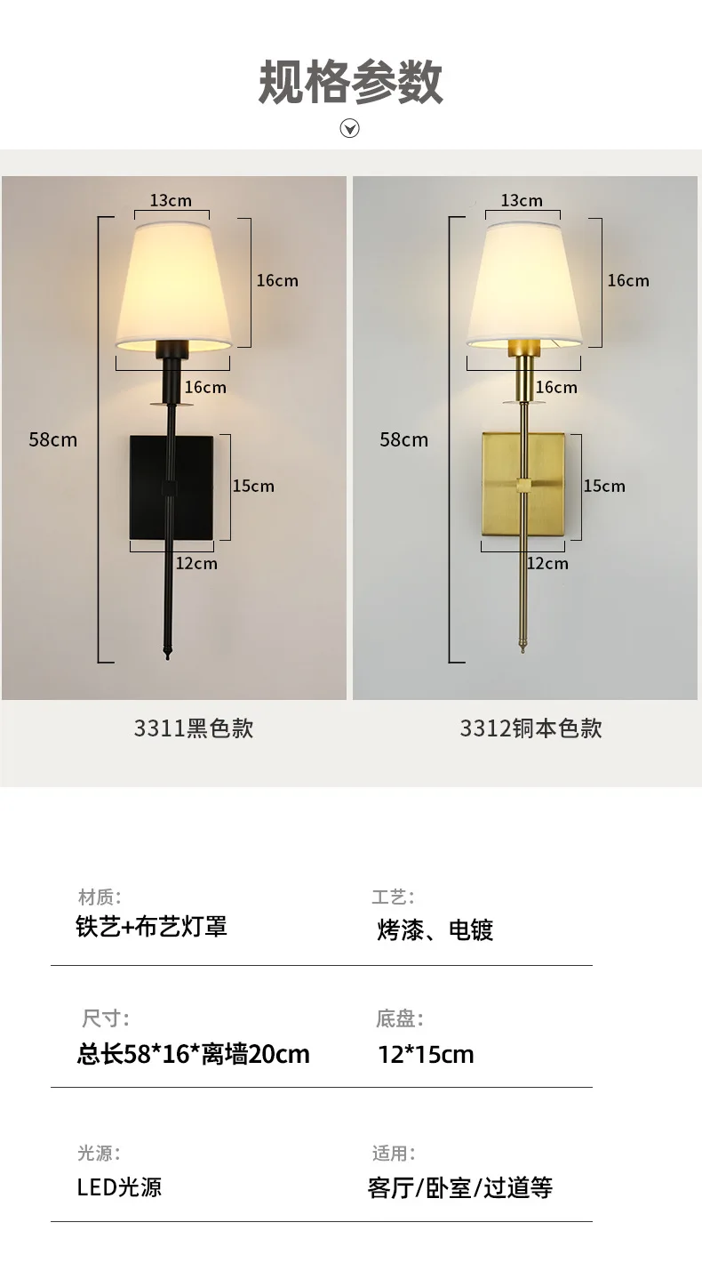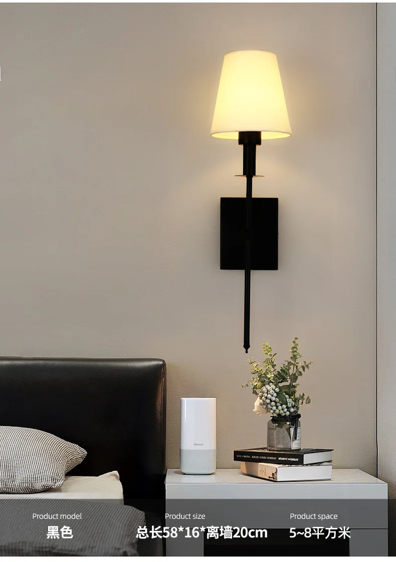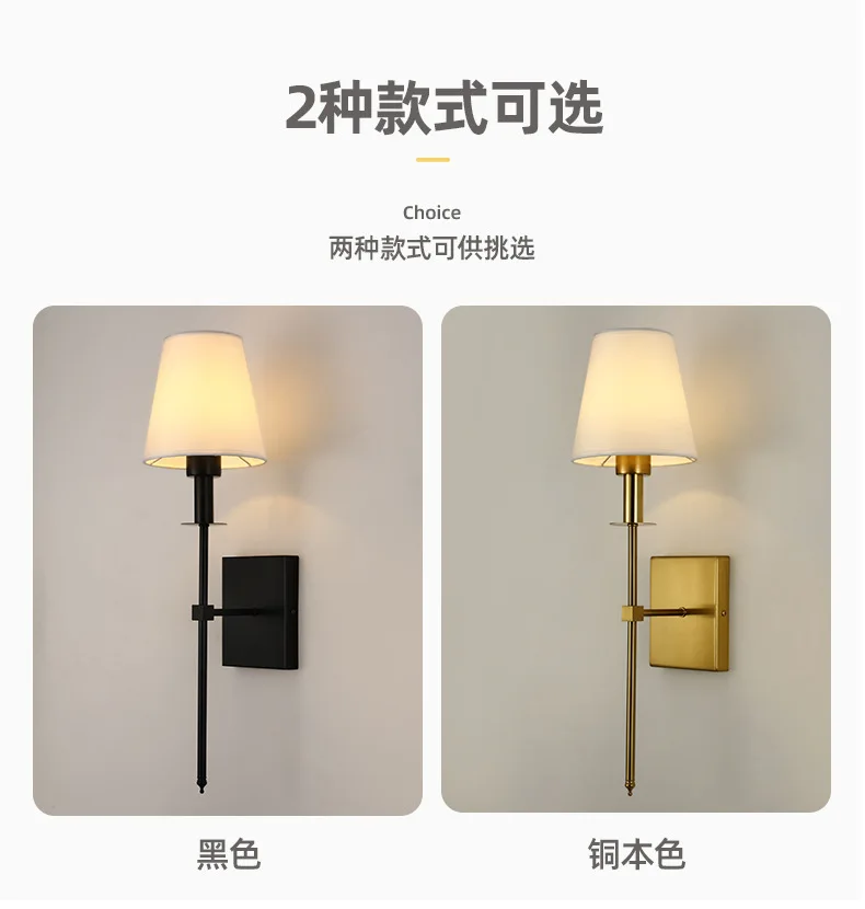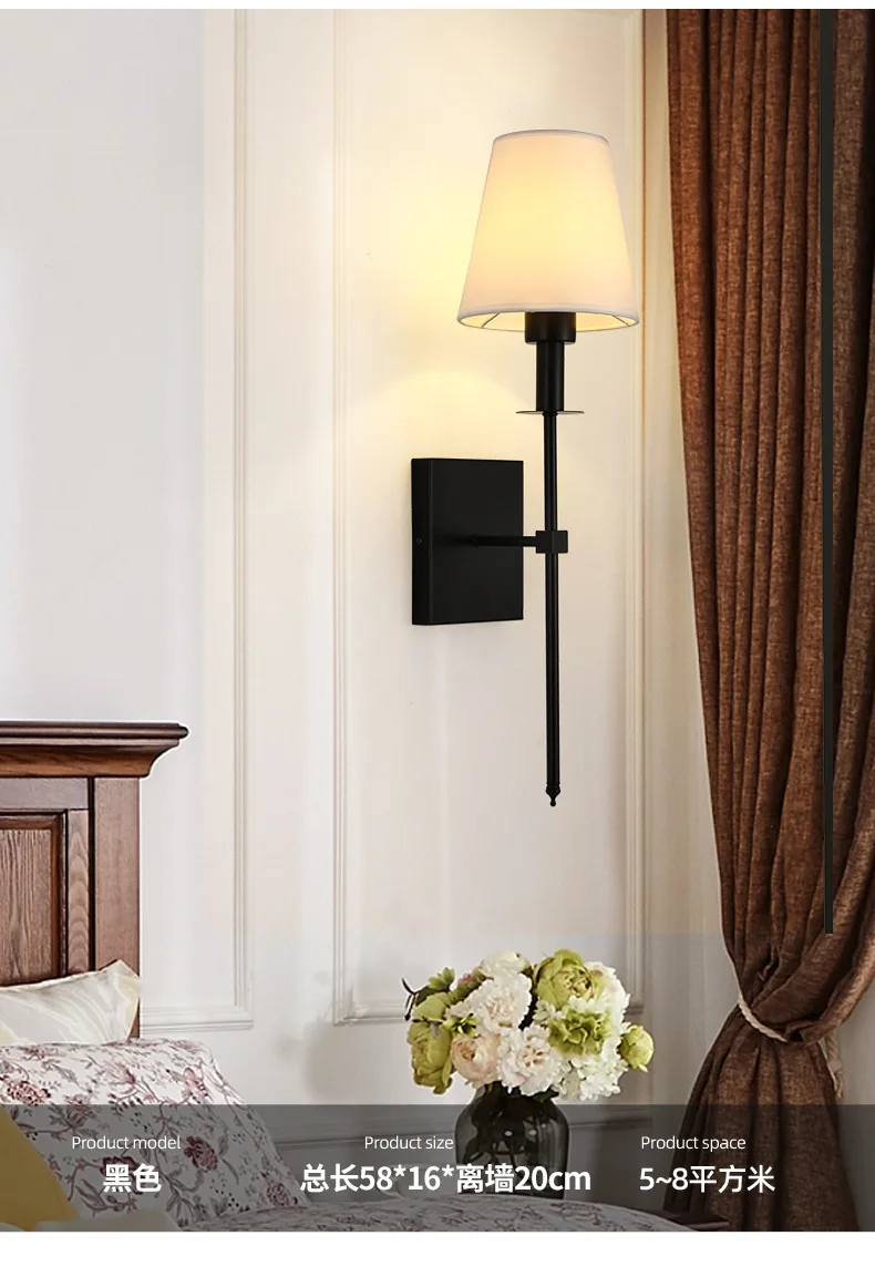 Modern American Led Wall Lamp for Decor Bathroom Mirror Light Bedroom Corridor Stairs Cloth Lampshade Wall Sconce Room Decor