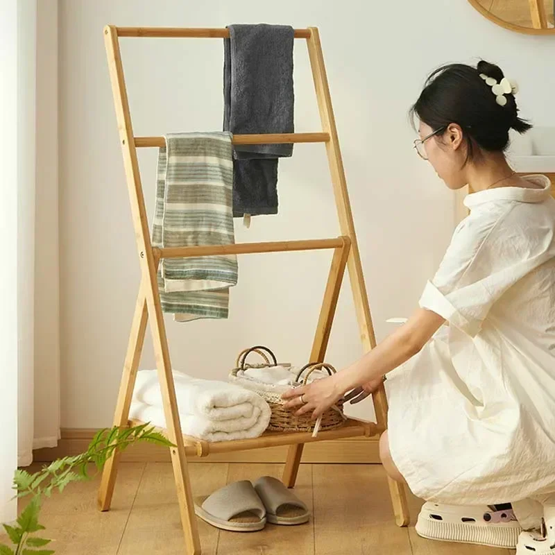 Modern Design Wooden Bedroom Floor Space Arrangement Storage Rack Hangers Foldable Towel Rack Shoe Rack Clothing Rack