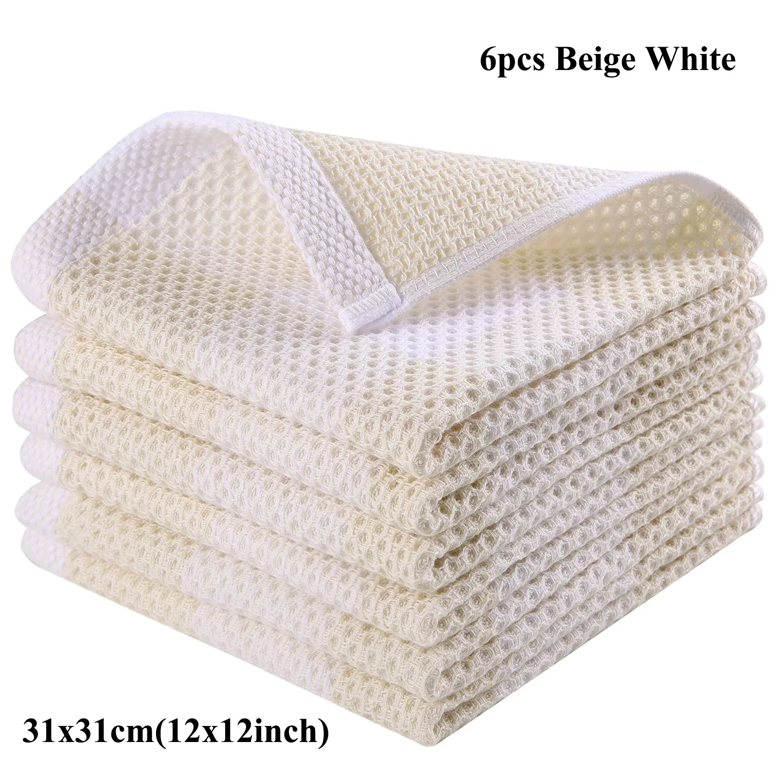 100% cotton waffle weave dishcloths that feels soft and comfortable. Unique honeycombs design makes it more durable, and soften with every washing, so these dish towels won't scratch your delicate cookware, plates and pans.