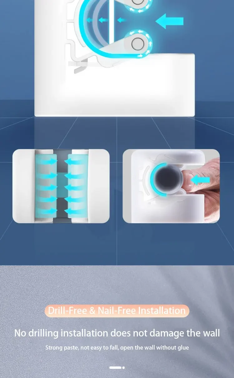 – Hassle-free setup with strong adhesive backing. Preserves walls and tiles—no tools, holes, or damage. Ideal for renters and homeowners alike. -