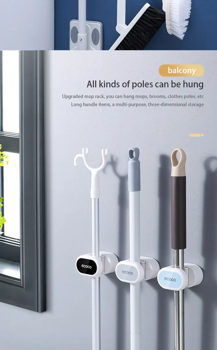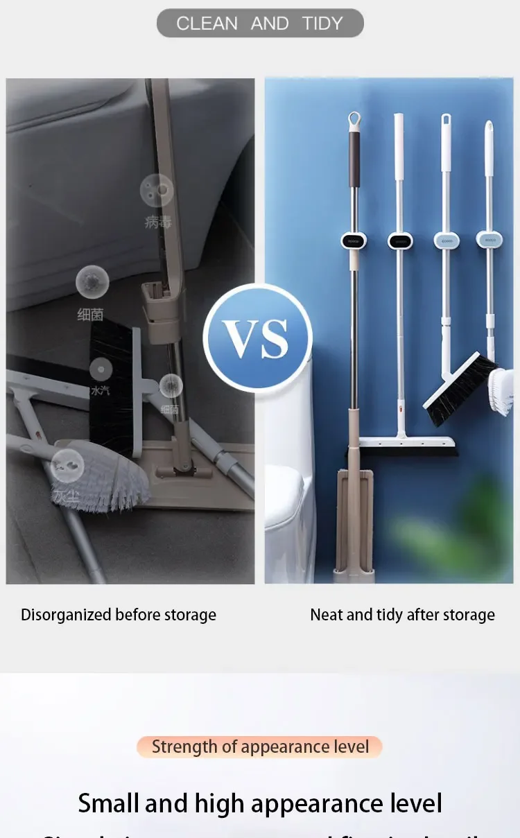 Versatile: Securely holds mops, brooms, or cleaning tools.