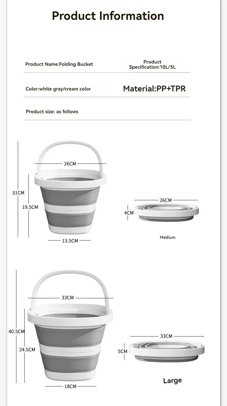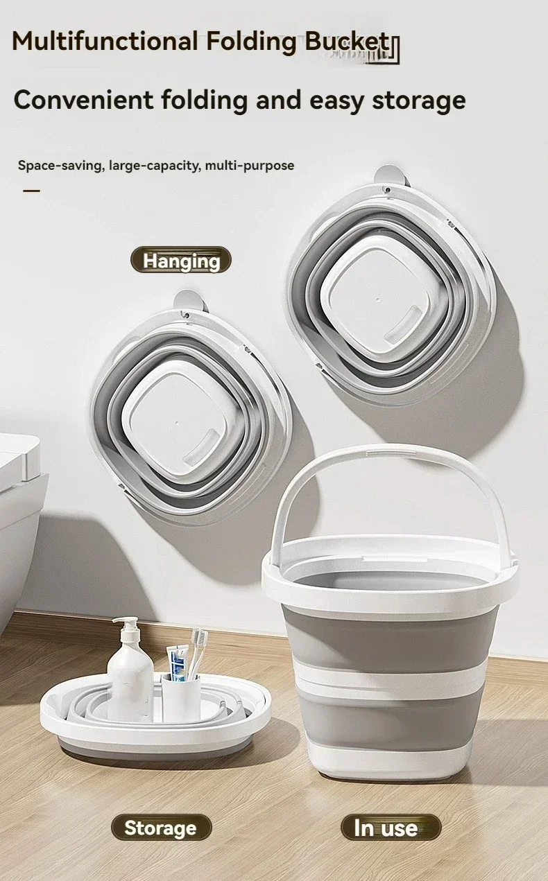 Versatile Folding Water Bucket with Handle for Home and Outdoor Use - Collapsible Fishing Pail for Portable Storage